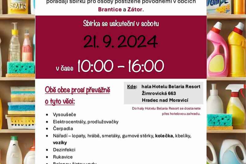 SDH Hradec nad Moravicí, společně s naším sponzorem Hotel Belaria Resort, vyhlašuje materiální sbírku pro obce Brantice a Zátor.
