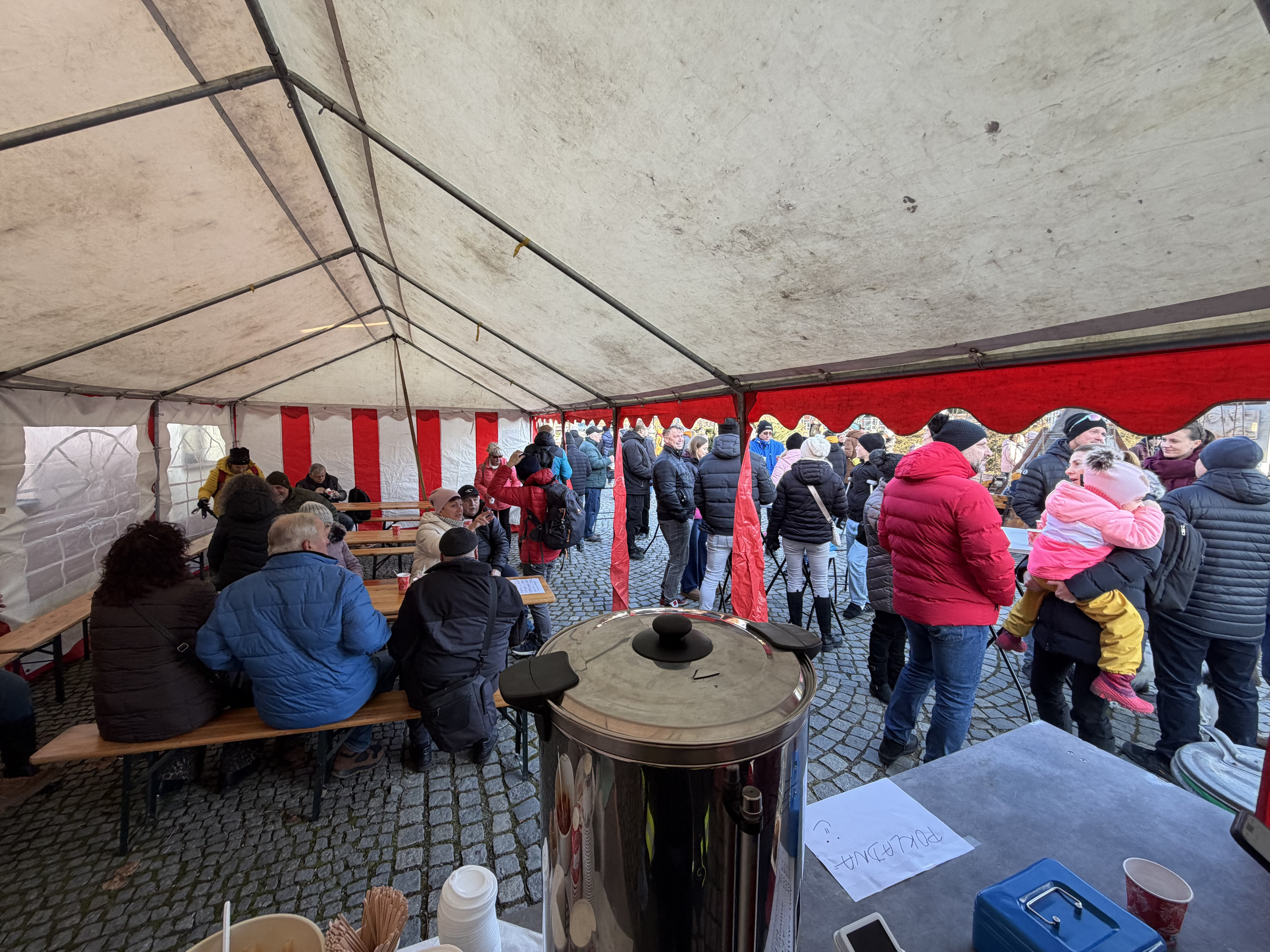 Vyvrcholením adventního období byla účast na celodenním Hradeckém vánočním jarmarku, který se konal 20. prosince. Na ulici Podolské jsme zajišťovali prodej svařeného vína, teplých nápojů a občerstvení. Stánek sboru byl po celý den hojně navštěvován a akce se nesla ve velmi příjemné vánoční atmosféře.